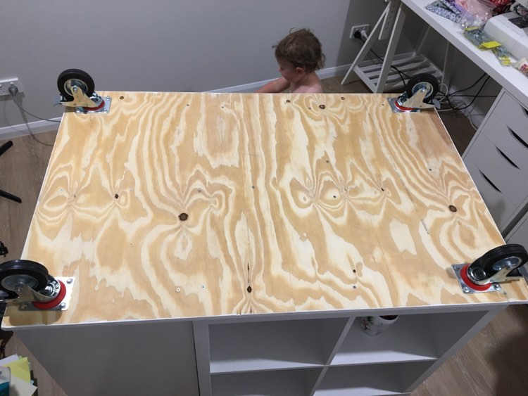 6. Screw ply to units with 40mm screws, I used self drilling, but drilled too close to the edge of the ply and split it. I just screwed further away from the edge, but drilling pilot holes would’ve helped.