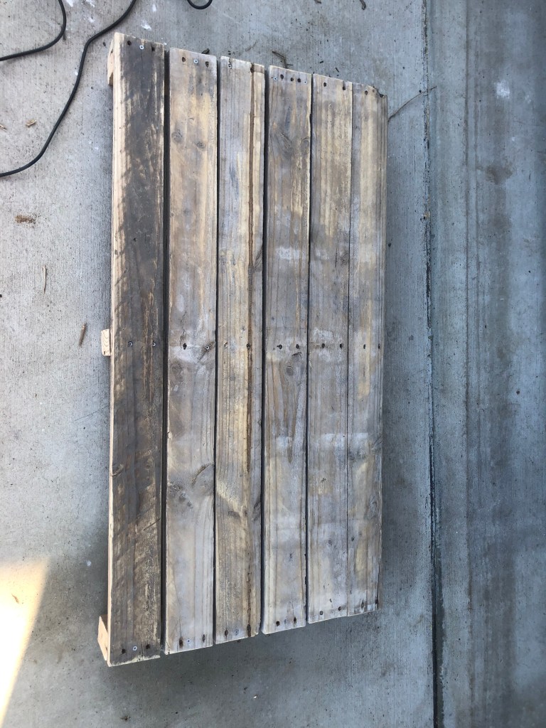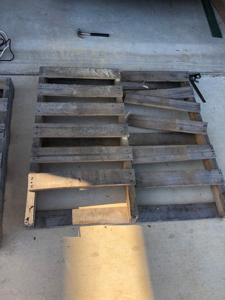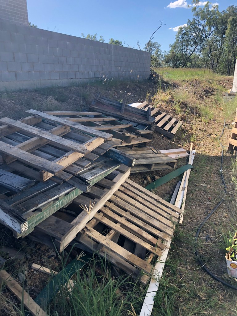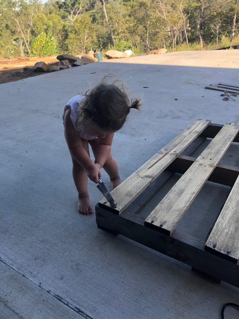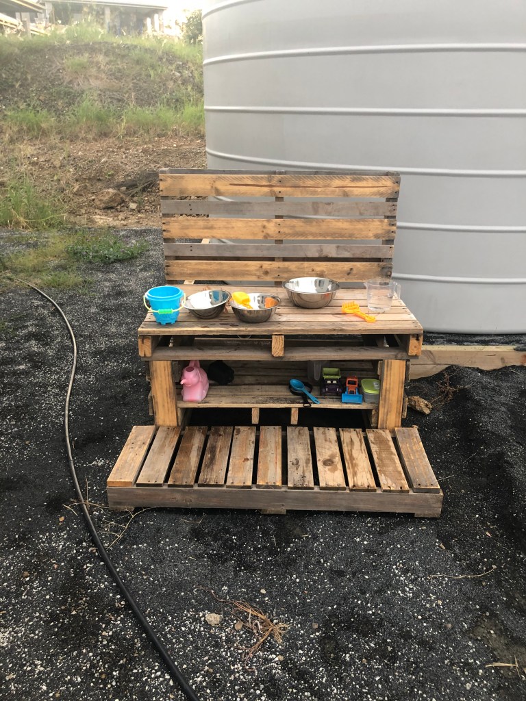 So the making of the mud kitchen.. what a journey it has been! Getting the pallets was an adventure alone. Driving around the neighbourhood in a neighbours manual van was fun so deserves a special mention, Louis got a pretty impressive cut on his knee that probably needed a tetanus shot and stitches, but it’s healing well! I think it’s safe to say for future pallets, it’s worth paying a small fee to have them delivered.